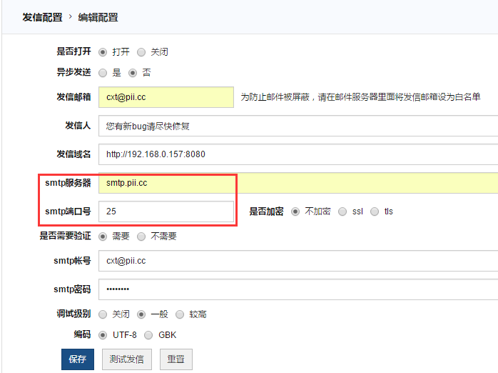 2、smtp配置为:smtp.pii.cc(测试发信失败,提示smtp相关错误信息)