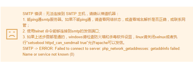 smtp服务配置为:mail.pii.cc 也提示截图所示的错误信息