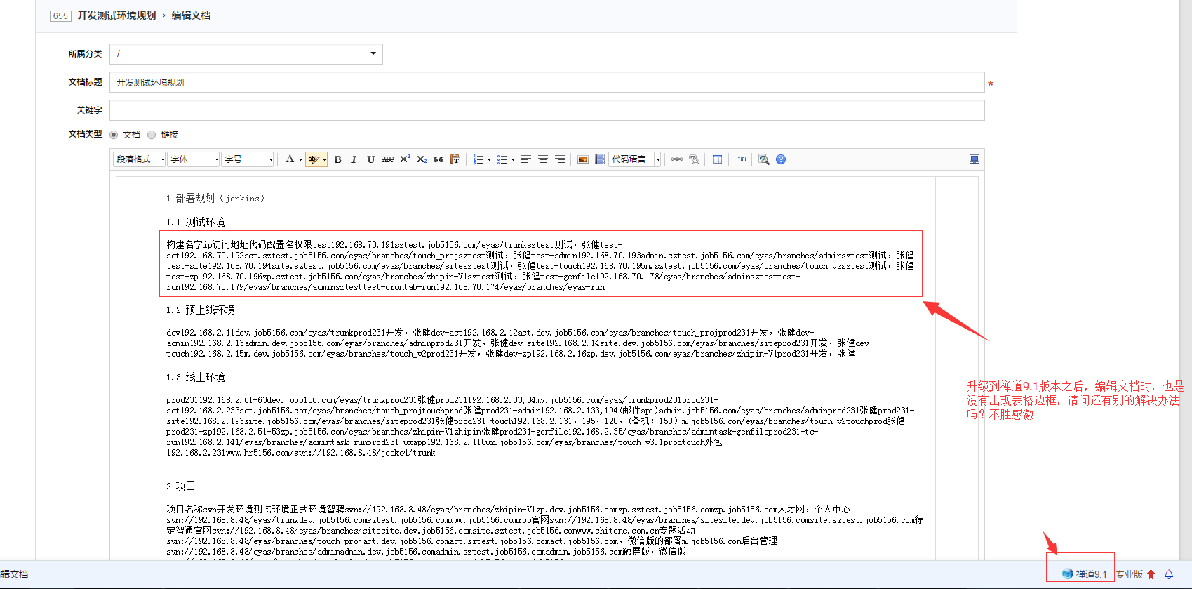 9.0.1版本禅道中,文档中的表格边框在编辑状态下消失已解决