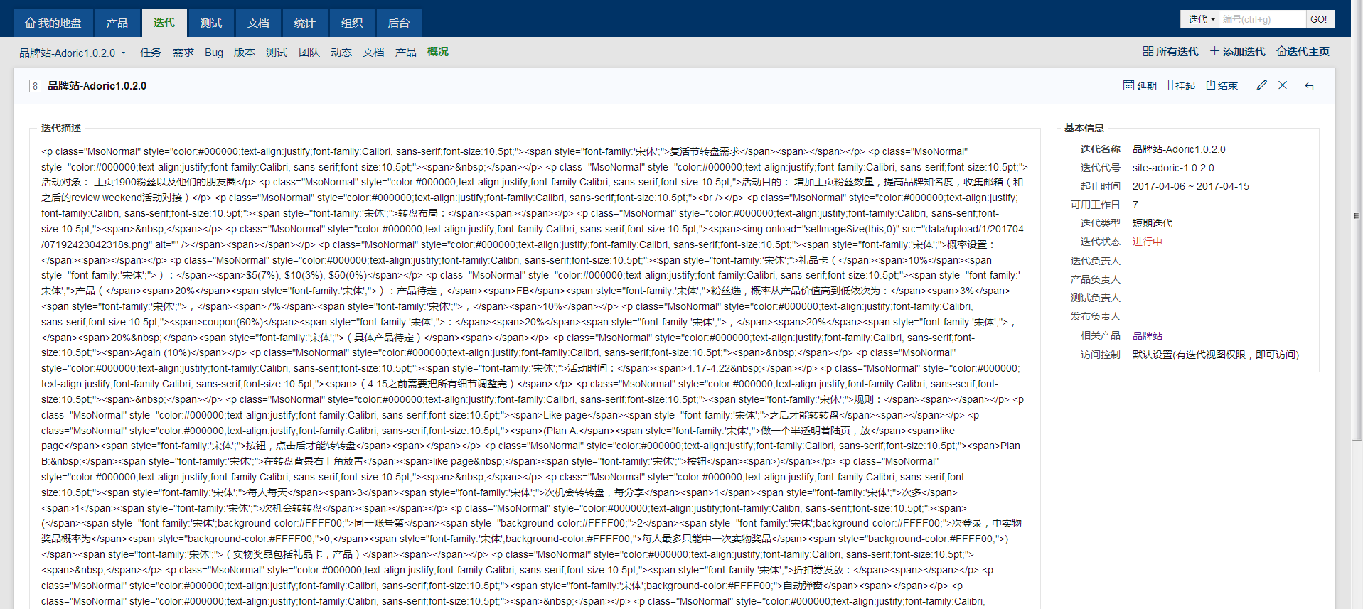 把迭代状态由进行中更改为已完成,再次点击查看,结果之前的图文描述变成代码文本