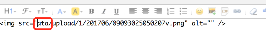 在富文本编辑器中粘贴或上传图片后点击切换html视图(如下图)