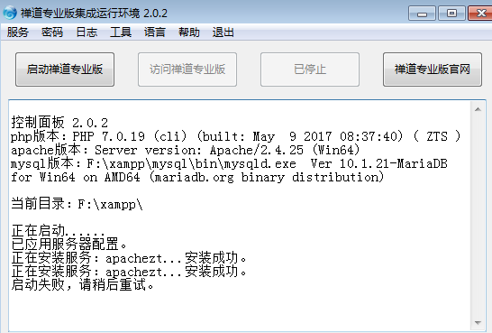 石洋洋2017-06-22 11:40:02 多点击几次 启动禅道专业版 按钮试一下。 |