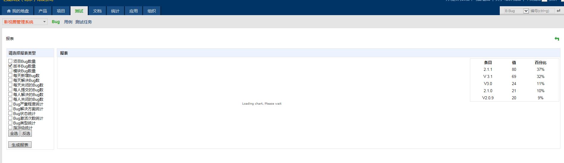 测试视图下的BUG,生成报表, 就显示一直加载,请等待,没法显示图标?不知道是为什么? 禅道版本号为4.0已解决