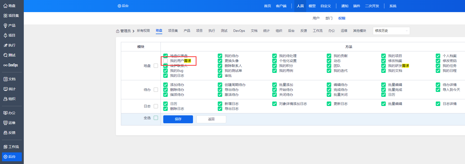 51591分配权限后,地盘-贡献-用户需求的tab不见了已解决