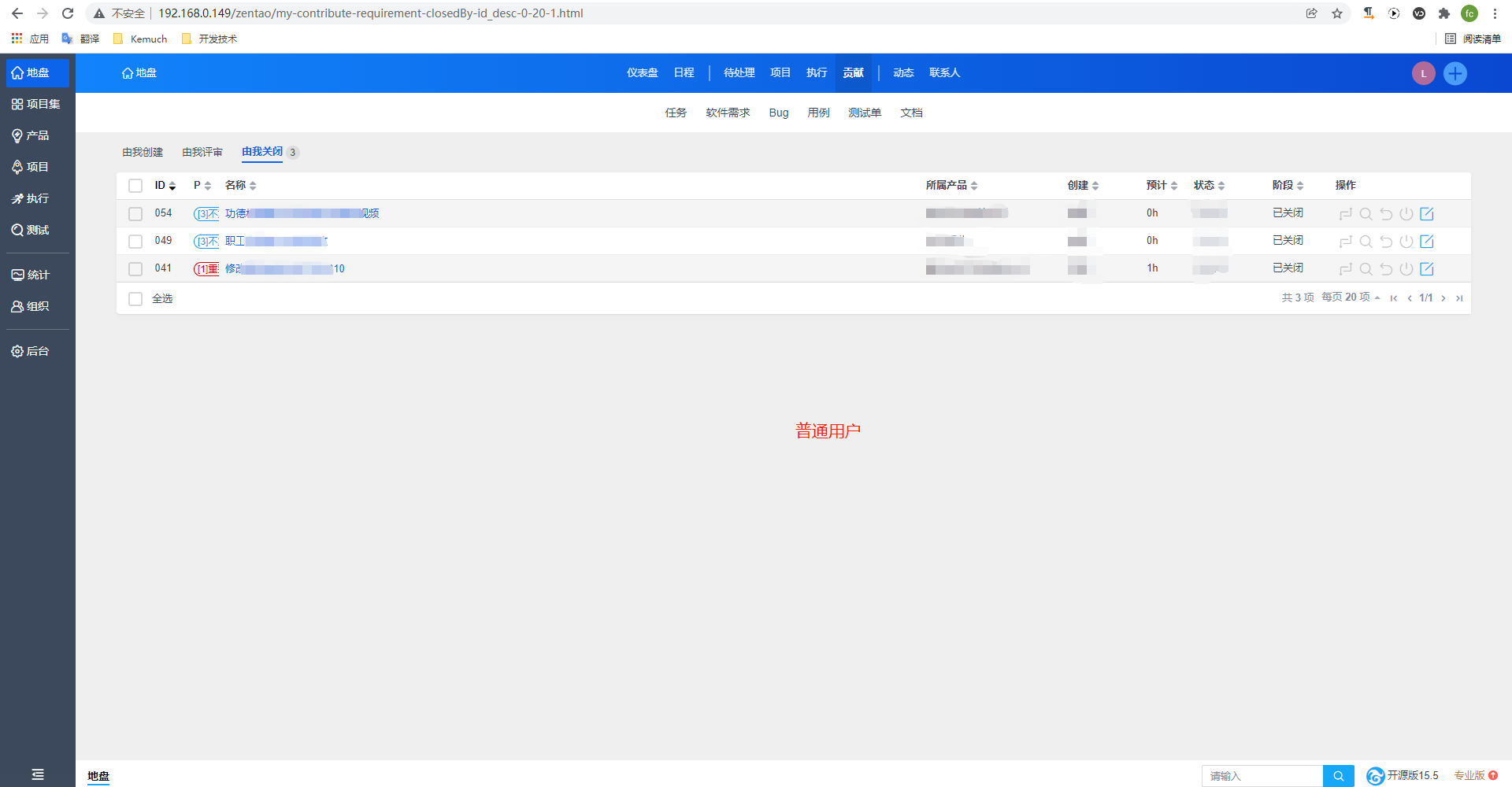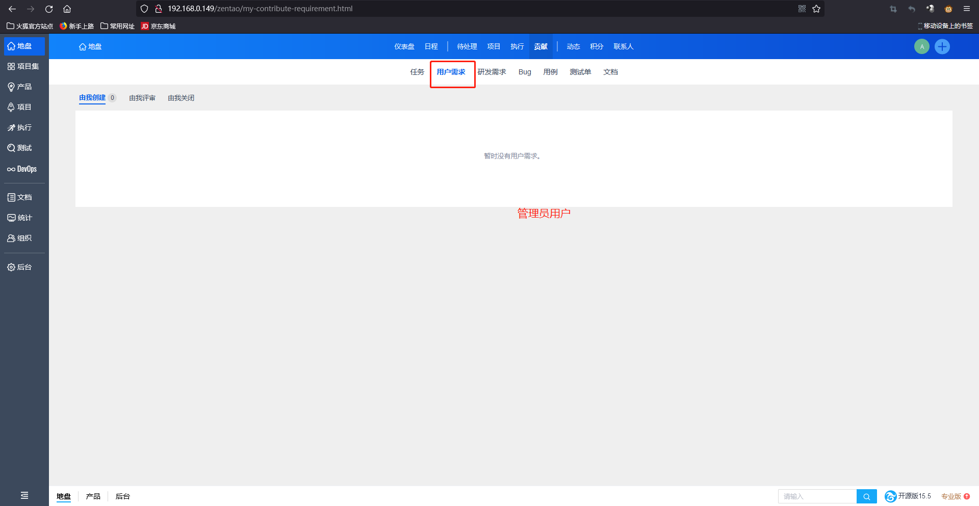 在admin账户下,证实确实存在用户需求的tab,通过url访问zentao/my-contribute-requirement.html 也是能够访问的,请问我该怎么处理,非管理用户才能出现该tab?
