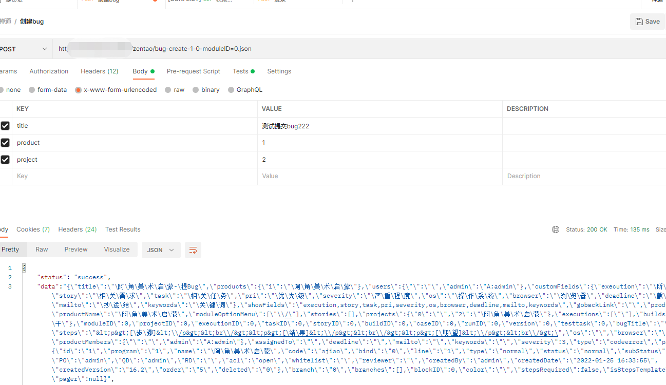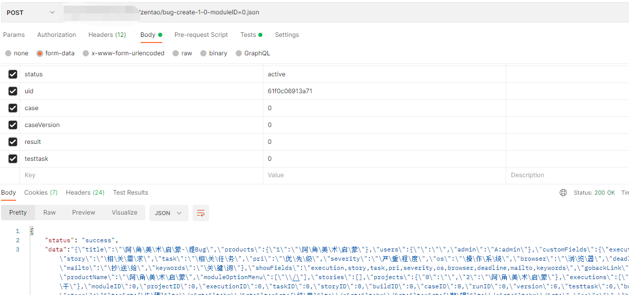 通过postman调用禅道API,无法创建bug,返回一个创建bug初始化列表已解决