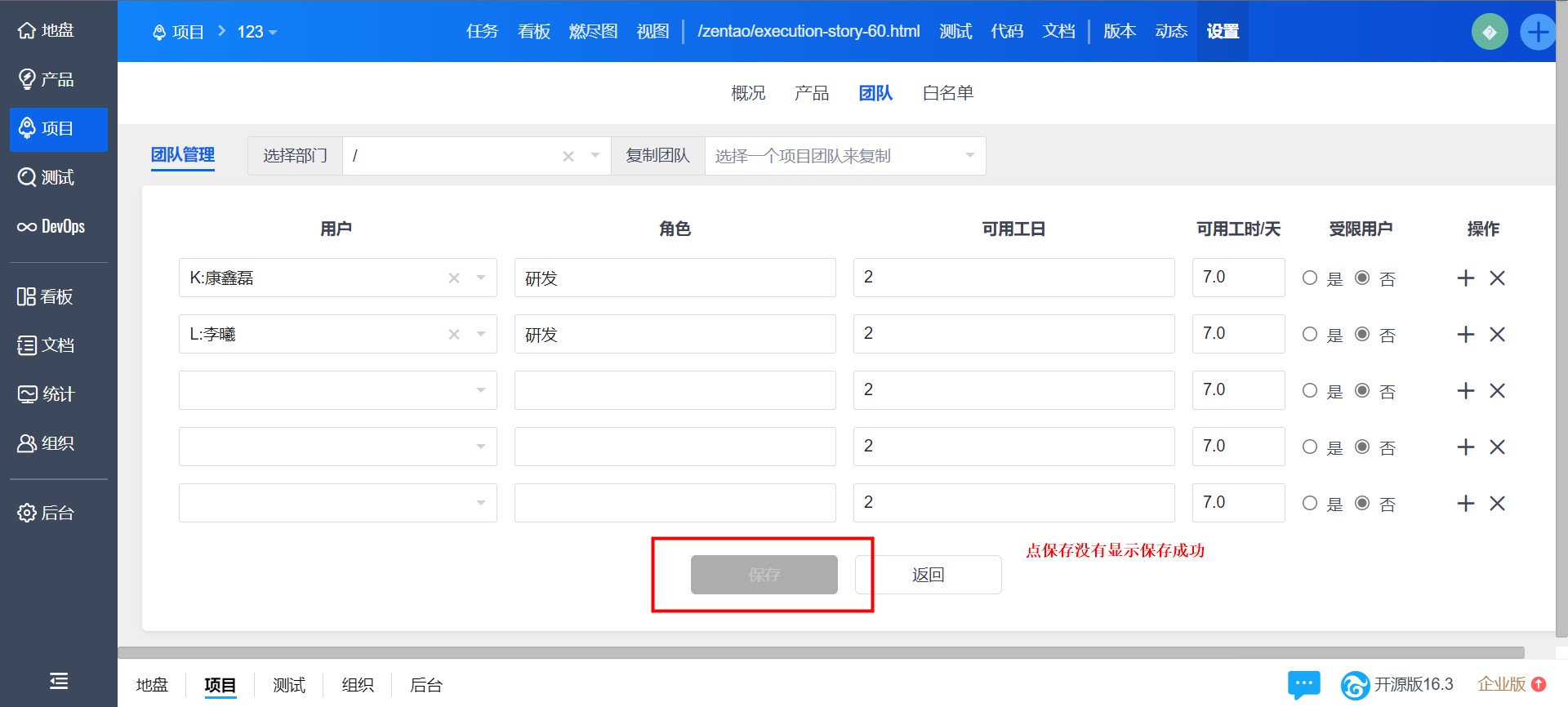 53643项目团队管理,添加成员后不能保存已解决