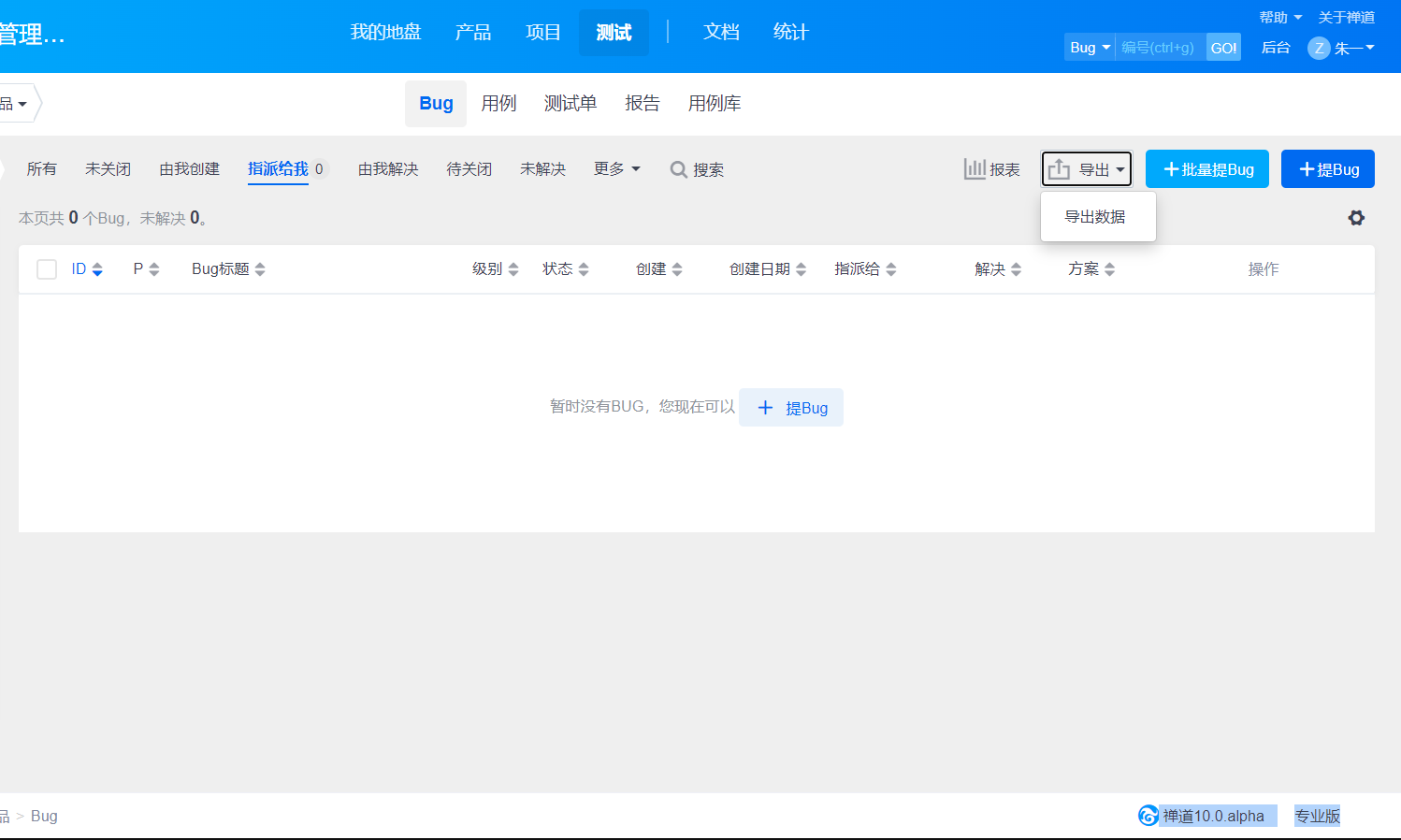 禅道10.0.alpha 专业版,测试>BUG页面没有导入功能已解决