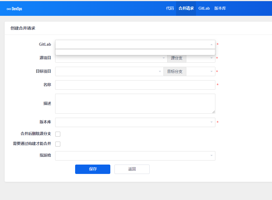 可以看到代码,创建合并的时候也选不到项目