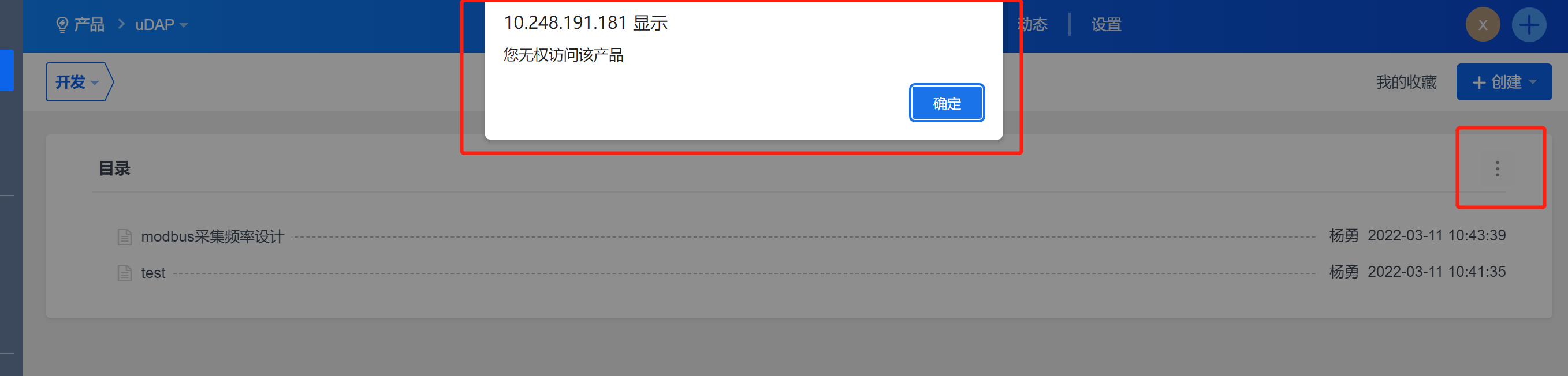 产品访问识图没有问题,权限没有问题,可以访问产品的需求、计划等所有内容,文档页面,可以添加编辑文档,但是点击维护目录,提示无权访问该产品。