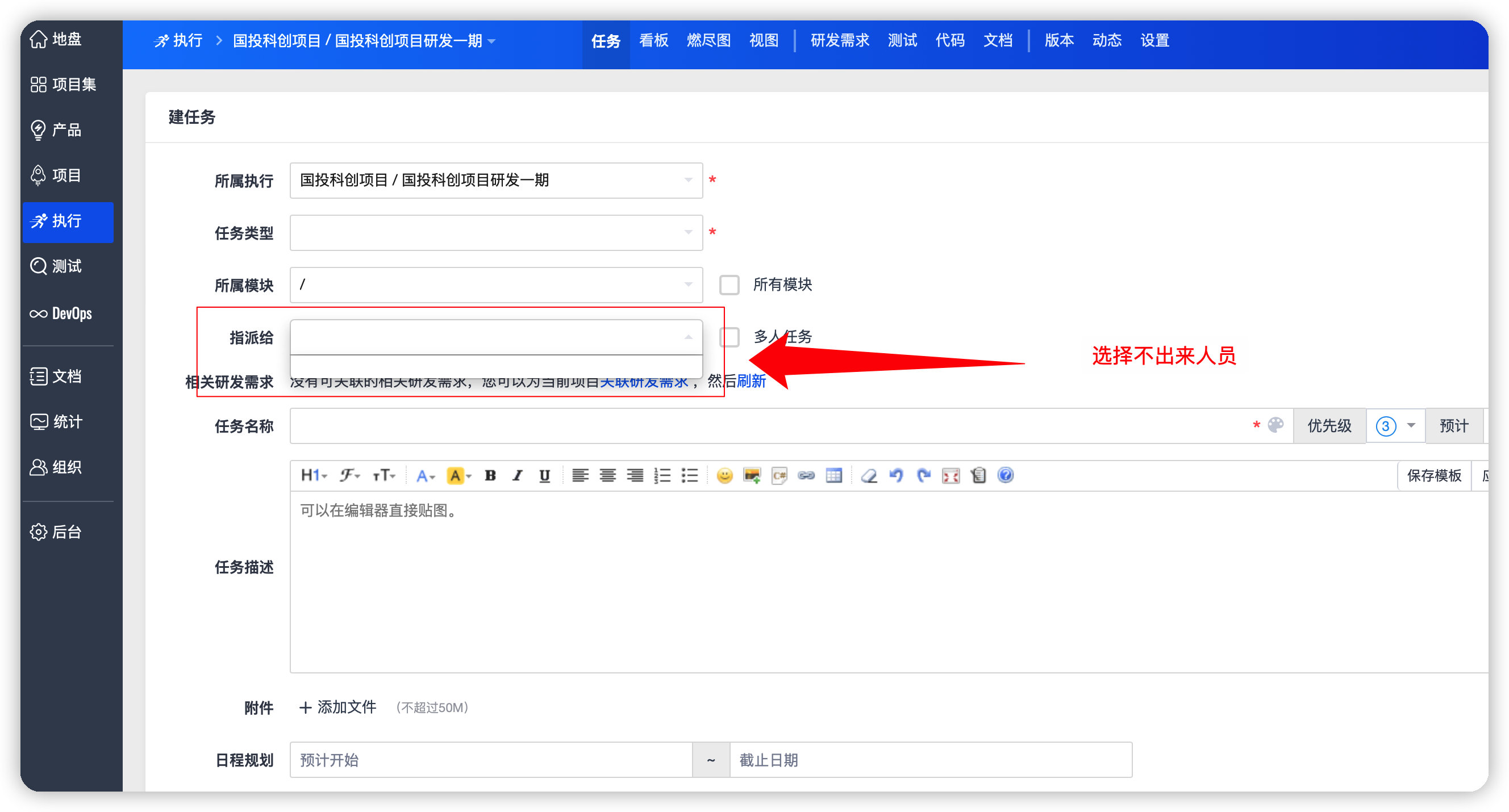 53804项目设置好了团队后,在新增任务中选择不了团队成员已解决