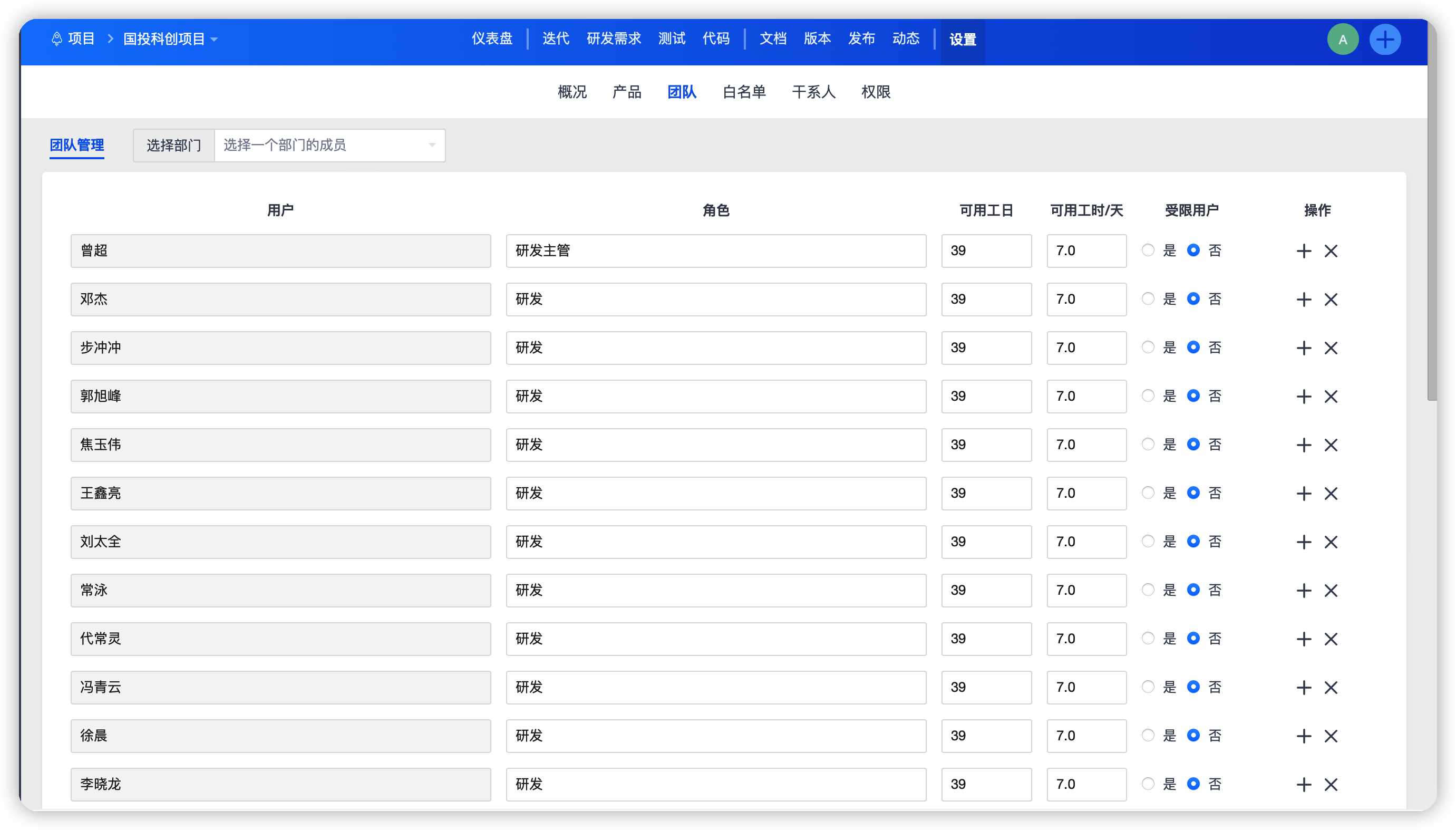 1. 选择一个项目--->设置-->管理团队--->新增所有部门人员