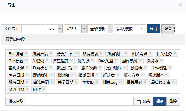 🚢 8.0.1版本比较早了,新版本有设置导出字段选择的功能。 建议升级到最新版本。升级前请做好数据备份 下载地址:http://www.zentao.net/download/80054.html
