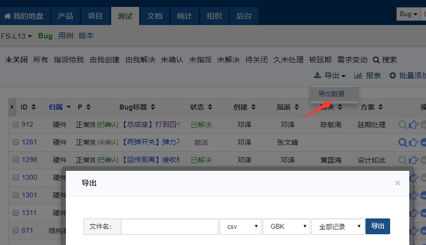 关于禅道开源版本,测试BUG导出数据的表格更改导出需要。已解决