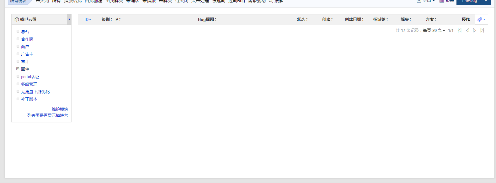 linux一键安装包9.7,开源版,点击bug排序,bug列表变空已解决