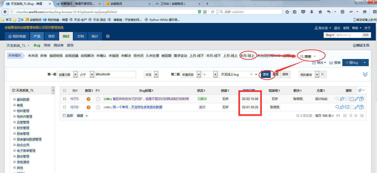 2.打开对应标题重新搜索,则显示为当月BUG;
