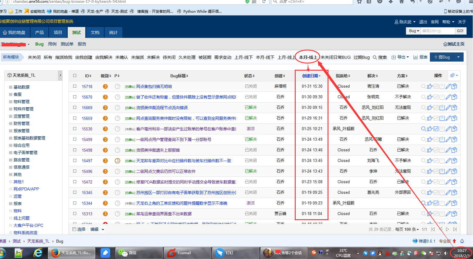 1.当前时间2.3号,按照标题搜索本月BUG,显示是上月全部BUG;