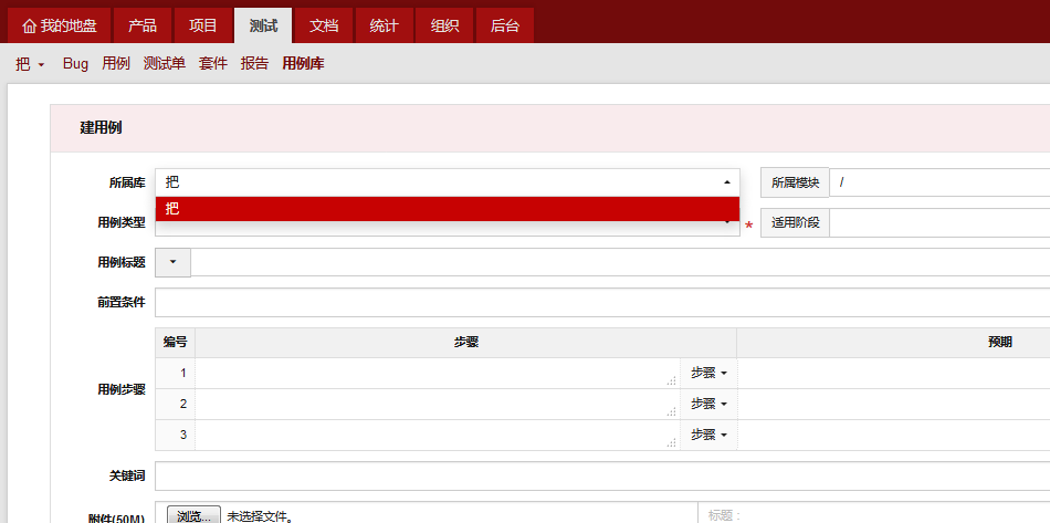 保存, 现在点击用例库,右侧显示为空, 但是左边下拉框缺显示 ' 把'的存在