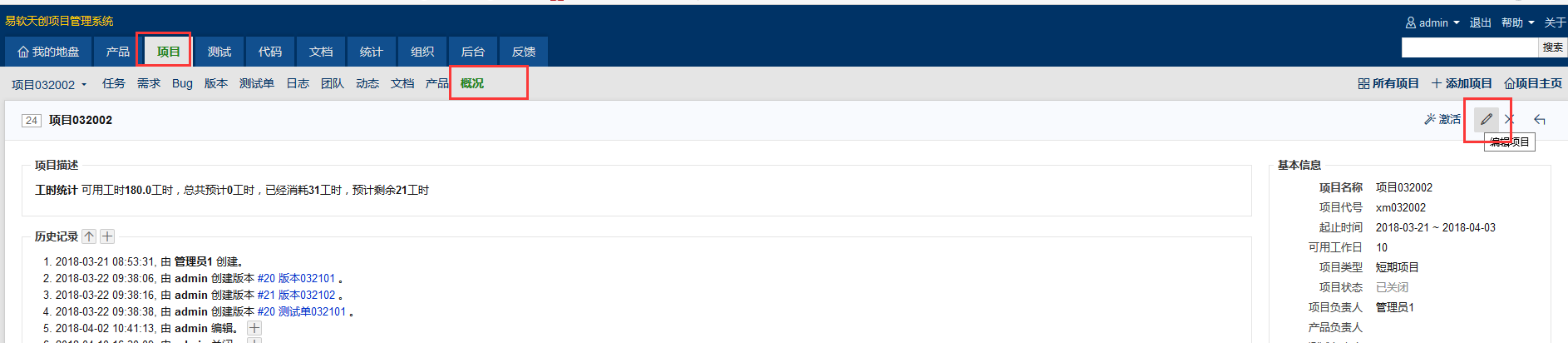 🚢 将原有用户删除,新建一个用户,在项目-概况中编辑,修改一下项目负责人。