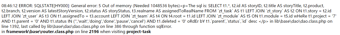5812今天打开禅道-点击【项目】和测试的BUG项均报错已解决