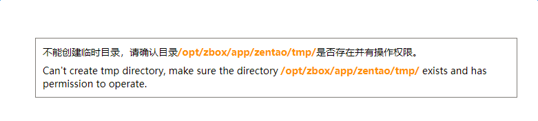 石洋洋2018-04-16 14:59:13 按照提示操作即可:chmod -R 777 /opt/zbox/app/zentao/tmp |