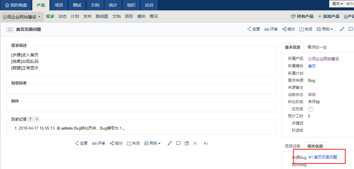 目前BUG的解决方案上有一个转为需求的选项,但是我这么操作之后,在需求中还是没有发现转过来,仅仅是把BUG的解决方案标记为“转为需求”了,这一块支持吗?例如我把BUG转为需求后,在BUG中就查不到这个问题了,在需求中可以查找到,同理,需求如何转换成BUG?