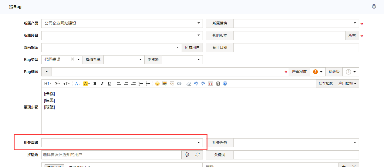 提bug的时候,可以关联需求的: