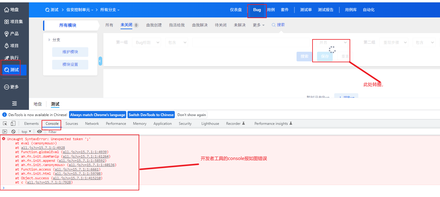 开源版本15.7.1,搜索功能转圈报如下错误,麻烦帮忙看看此处的问题,谢谢