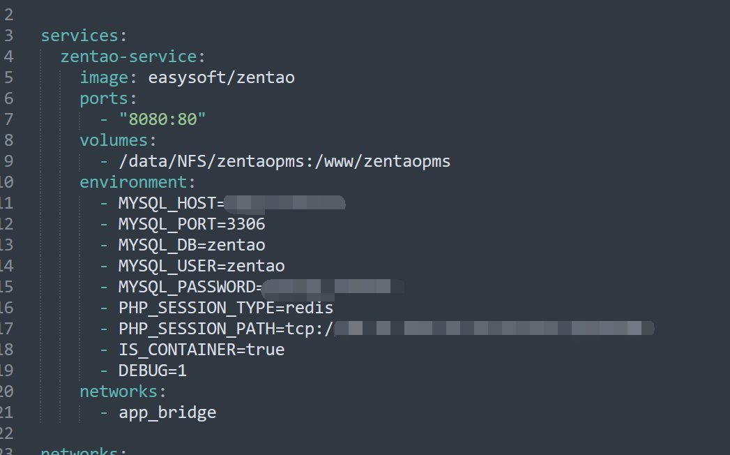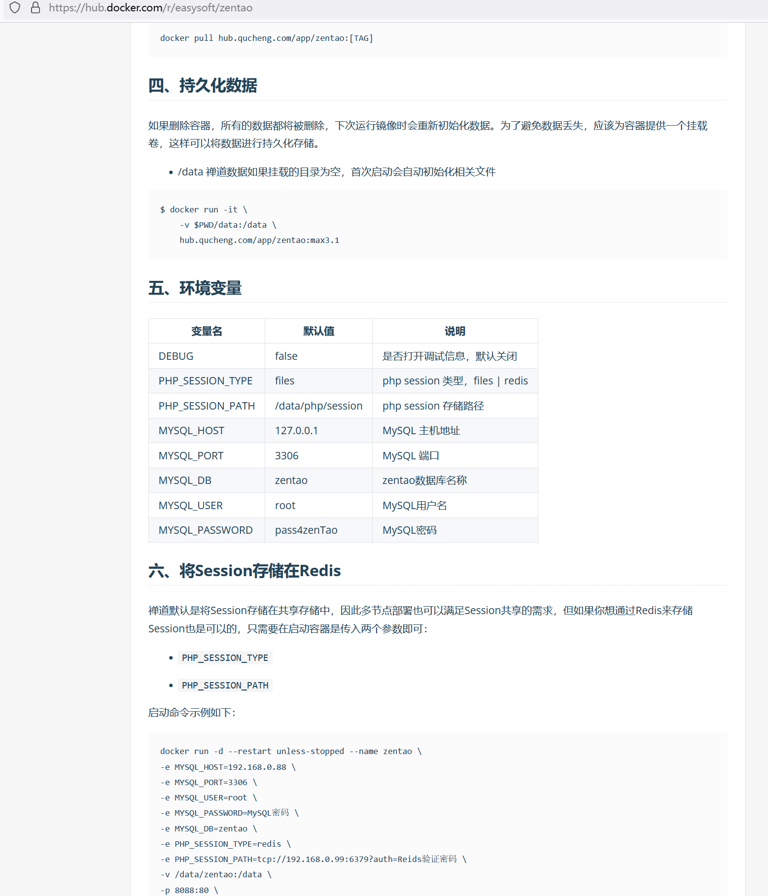 使用docker部署禅道,按镜像仓库文档说明配置docker-compos