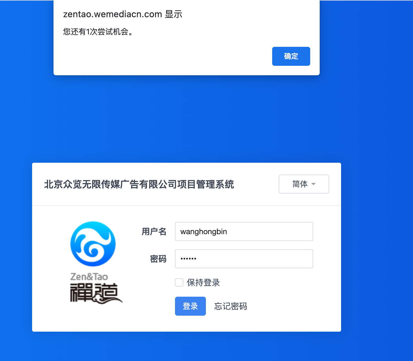 周末之前还好好的 过完节回来 禅道登陆不了。包括admin已解决