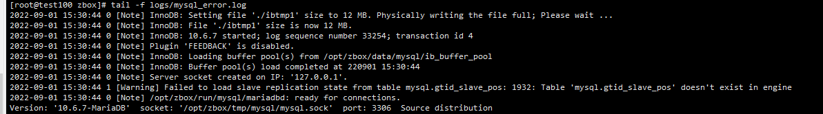 重启zbox,mysql_error.log没有日志输出,还是停留在9.1号的日志