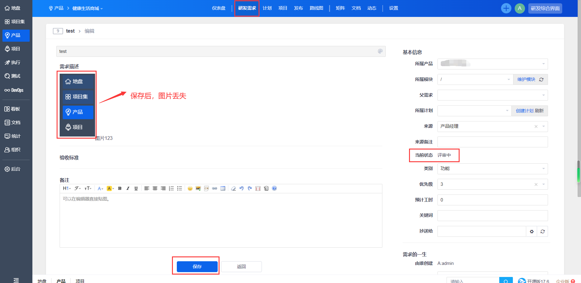 596113禅道17.6版,修改评审中的研发需求,提交后需求描述中的图片丢失了。已解决