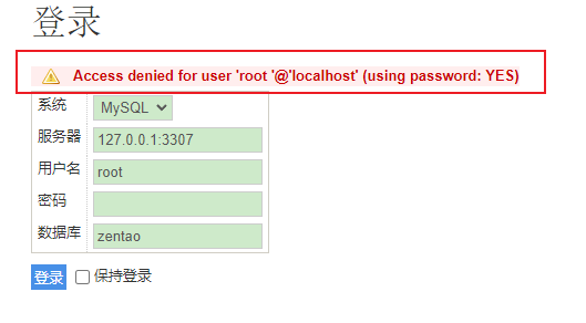 🌽 数据库异机访问: 一键安装包默认只能本地访问,windows、linux安装包Mysql异机连接参考文档:http://www.zentao.net/book/zentaopmshelp/276.html |