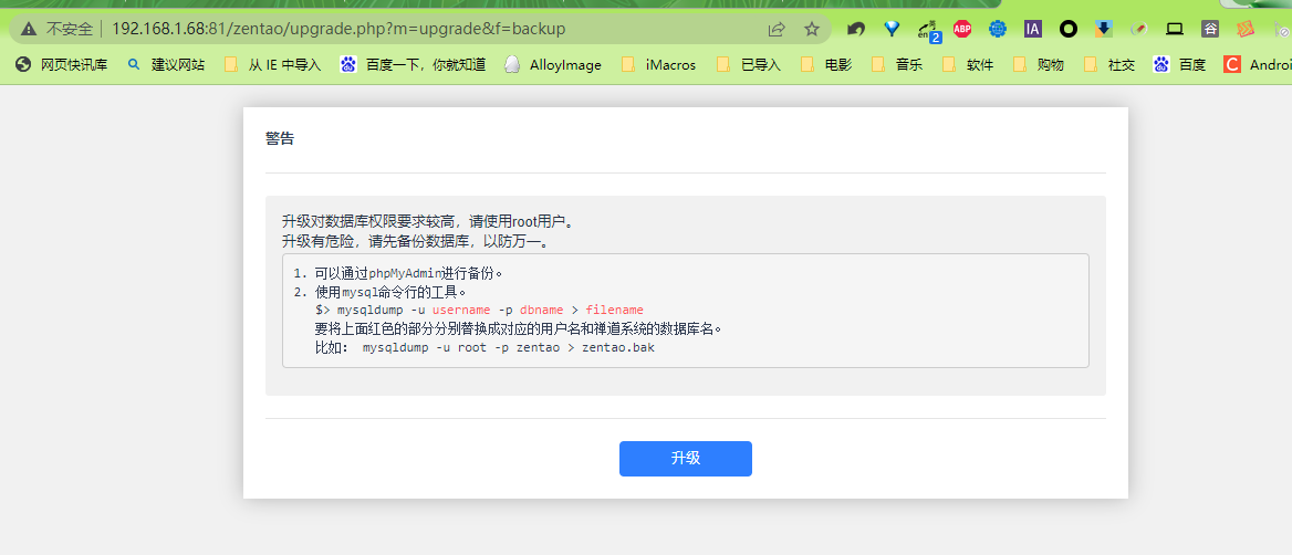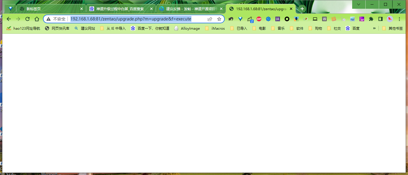 源码升级开源版12.5.3升级18.0时,创建OK文件开始升级后,下个页面再升级过程中出现白屏页面http://192.168.1.68:81/zentao/upgrade.php?m=upgrade&f=execute 停住了,如下图: