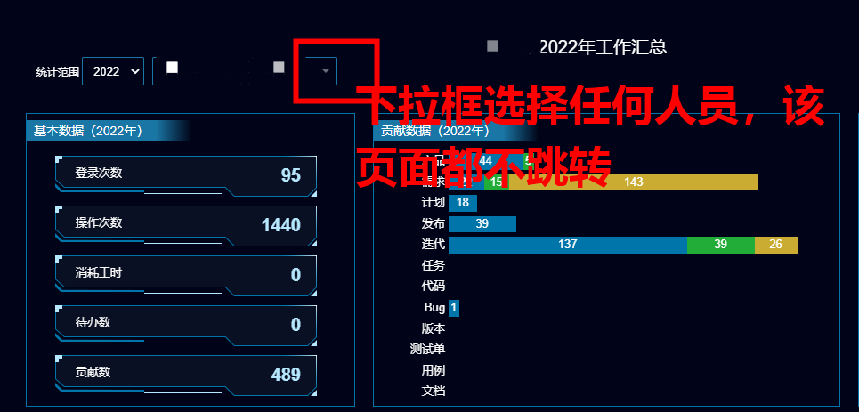 无论选择下拉框的任何人,都不能跳转到该人员年度汇总页。