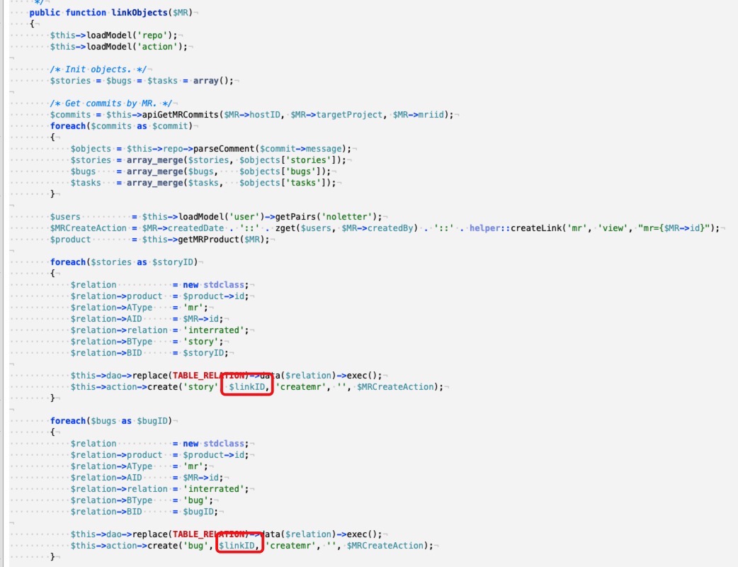 🚢 这里我们记录下bug,谢谢反馈 咱们可以先把linkID改一下, story下的改成$storyID bug下的改成$bugID task下的改成$taskID |