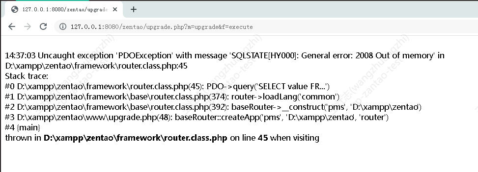 禅道-阿龙2023/02/17 1、升级前是否有做备份,可以还原下备份重新升级; 2、重新升级前可以把php内存调整成2048M,注意升级时的按钮不要点击多次,点击后耐心等待执行完成即可。