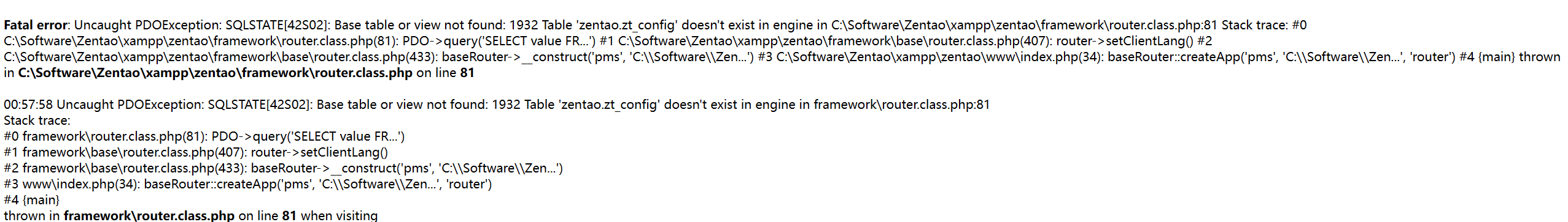图一(上方)是登录禅道时产生的报错,更新为innodb提示表在引擎中不存在