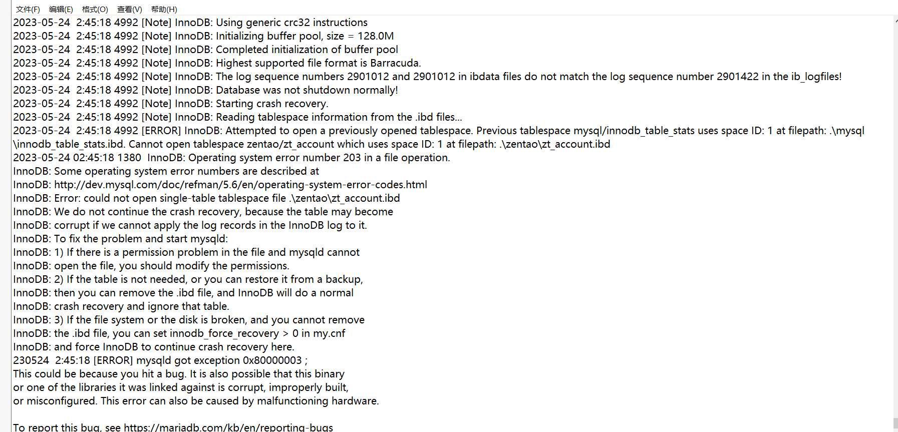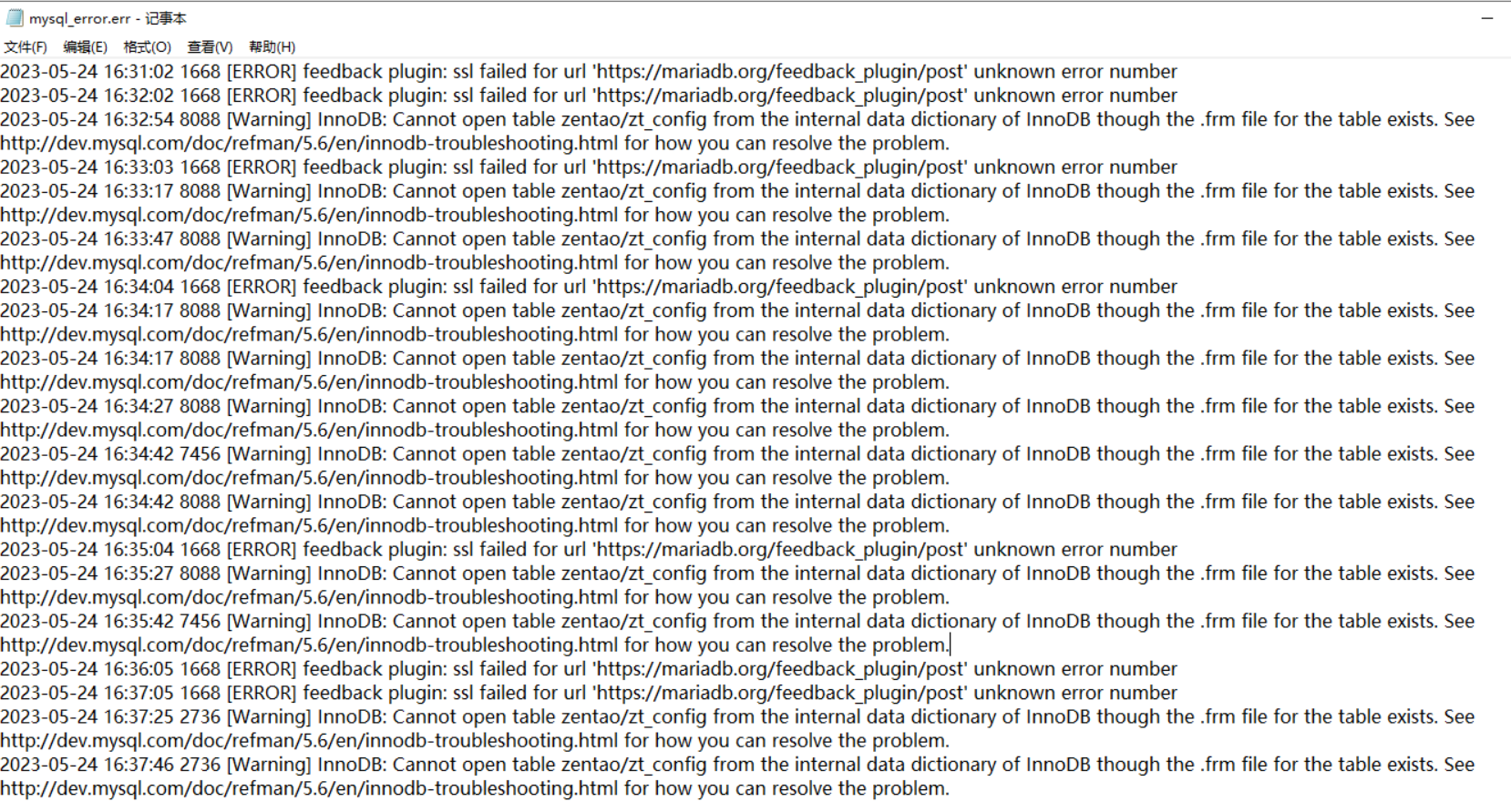 禅道更新为InnoDB后报错,关闭卸载服务后无法再次启动mysqlzt,更换端口后也无法启动已解决