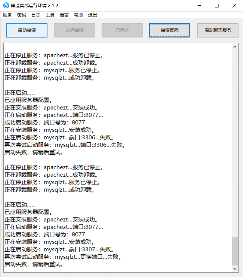 596442禅道更新为InnoDB后报错,关闭卸载服务后无法再次启动mysqlzt,更换端口后也无法启动已解决