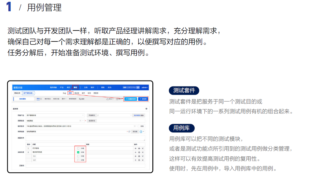 🚢 1、用例库是在公共用例的维护,可以将用例库导入到不同产品中进行复用。 2、套件是在具体某个产品下的,将产品下的用例组成套件,方便在提交测试单时直接选择套件下的用例进行测试。 🥗 |