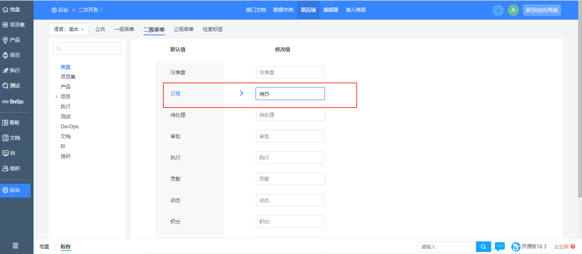 “日程”已经更名为“待办”了,为什么下面的区块里面还是“日程”呢已解决