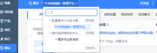 在测试模块只能查看第一个项目的数据,下拉选择其他项目点击还是第一个项目的已解决