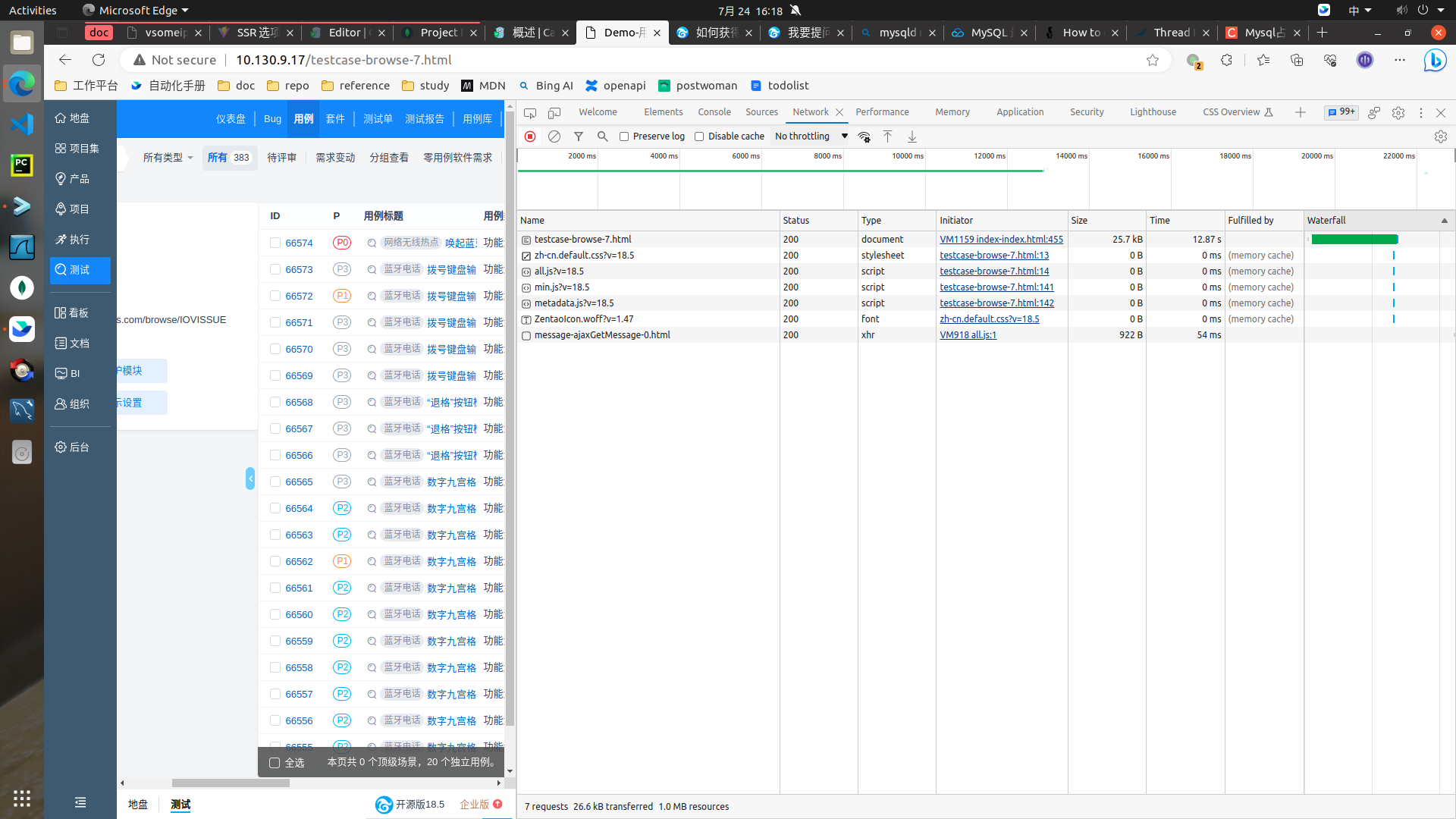 官方Docker安装的禅道18.5(从15.7.1版本升级,过程中根据建议把db引擎切换成了innodb),在新版本查看用例列表“测试->用例”加载非常慢(平均 13秒左右)