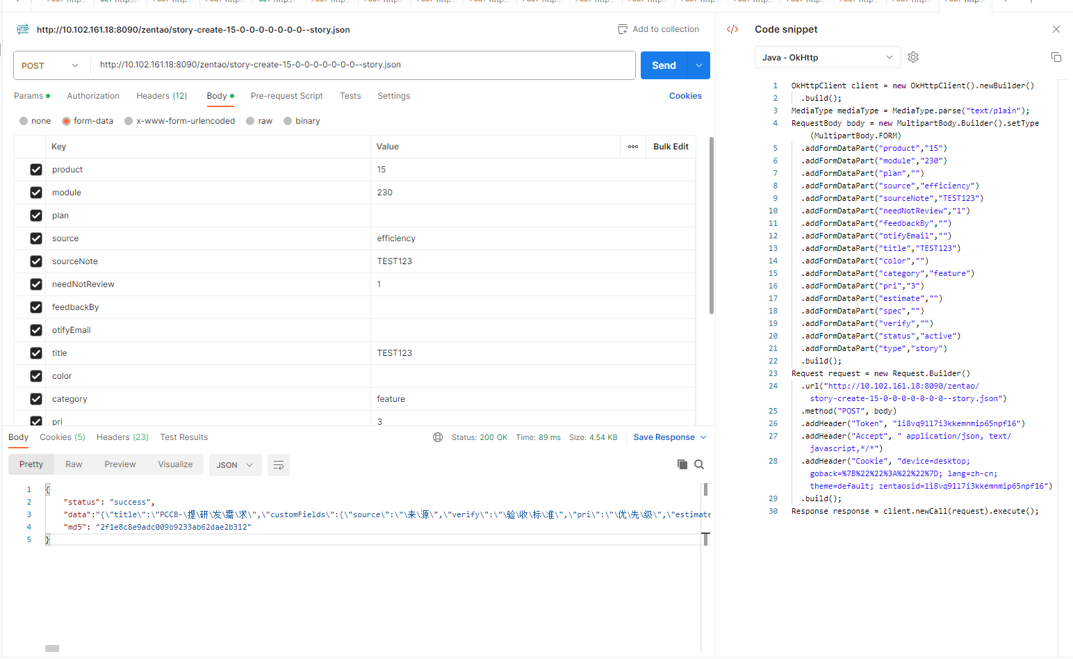 麻烦问下,我在调用API 创建需求的时候,返回 的结果是200 。但是数据库没有写入数据