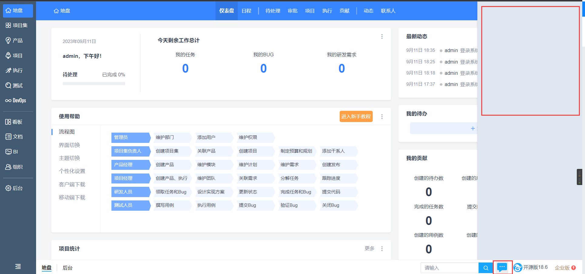 网页打开禅道后聊天的那个地方是空白的,其他都正常。求助已解决