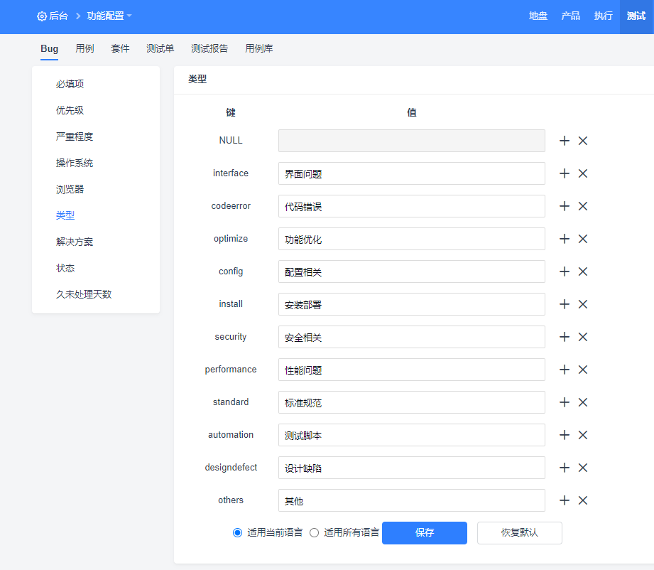 后台配置了bug类型,但是bug页面中没有显示出来已解决