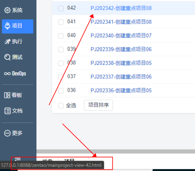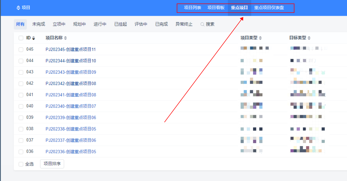 实现一级垂直菜单“项目”下的数据隔离,水平导航栏“项目列表”project模块的projectId,与水平导航栏“重点项目”mainproject的projectId,可独立存储,互不影响。