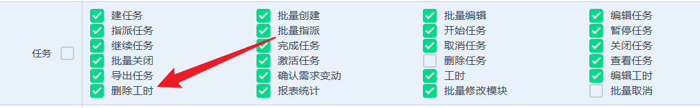 迭代下面的任务版块,进行中的任务,点击【工时】按钮,弹出工时记录小窗口,操作栏没有【删除】按钮,可以确认的是,操作的账户在组织-权限-权限维护页面,勾选了任务版块--删除工时的权限了