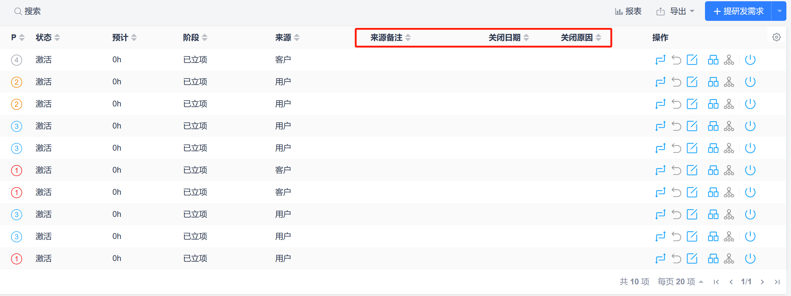 需求里填写了"来源备注"、"关闭日期"、"关闭原因",但是无法关联到需求首页面已解决